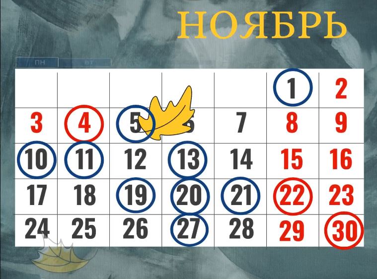 В последнем месяце осени будет больше выходных, чем в предыдущем.