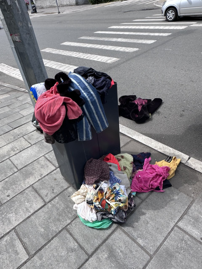 Жители Сызрани были озадачены необычной картиной. Мусорный контейнер на улице Советской, 44, рядом с колледжем искусств, оказался завален детской и взрослой одеждой. Бак до отказа забит горой тряпья, которая даже вывалилась наружу.