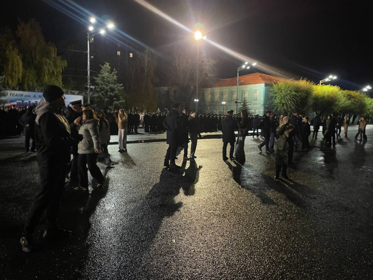 Центр города был перекрыт для движения транспорта. Курсанты училища отработали в деталях все элементы торжественного мероприятия.
