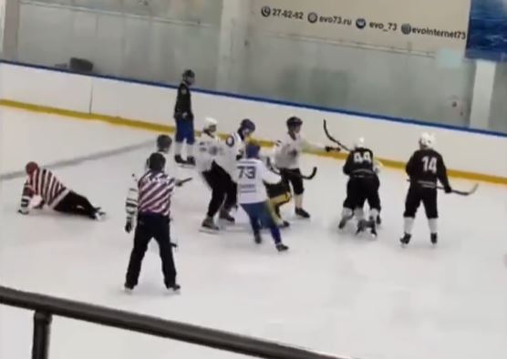 Видео инцидента быстро распространилось в соцсетях и Telegram-каналах. На кадрах видно, как во время драки в ход пошли не только кулаки, но и клюшки. Порой доставалось даже судьям, не устоявших на ногах.