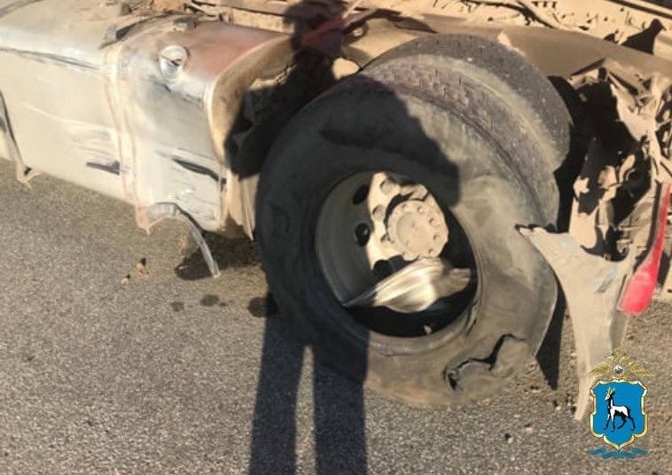 В ГУ МВД России по Самарской области рассказали подробности: 53-летний водитель за рулем грузовика МАЗ ехал в сторону Большой Глушицы и в пути у многотонной машины лопнуло колесо. Многотонная машина выкатилась на встречную полосу, где врезалась в большегрузы DAF.
