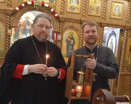 Эта святая лампада прибыла в Россию на борту самолета «Валентина Терешкова» Госкорпорации «Роскосмос» благодаря заботам Фонда Андрея Первозванного и была доставлена в аэропорт Внуково вечером 11 апреля.