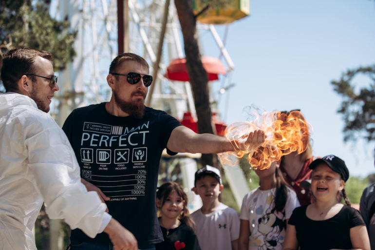 Желающие могли поучаствовать в научном шоу, разгадать магию фокусов, повеселиться с ростовыми куклами Сониками и, конечно, никого не оставили равнодушными велотрюки гостей из Тольятти.