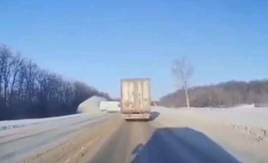 На кадрах видно, как микроавтобус резко заносит и разворачивает на встречную полосу, по которой в этот момент едет фура. Все решают секунды. Водитель большегруза берет немного вправо и останавливается.