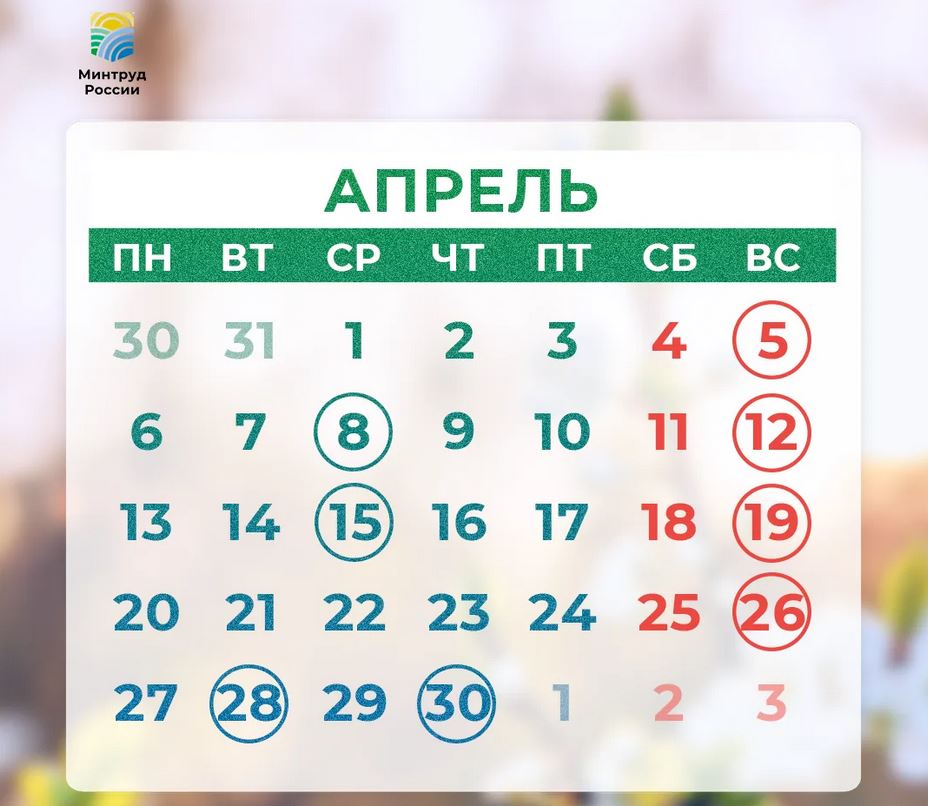 Минтруд опубликовал календарь выходных и праздников на апрель 2026 года. Во втором месяце весны россиянам предстоит ходить на работу 22 дня и восемь дней отдыхать. Для сравнения, в марте было 10 выходных и 21 рабочий день, а феврале - 19 рабочих дней и девять выходных.