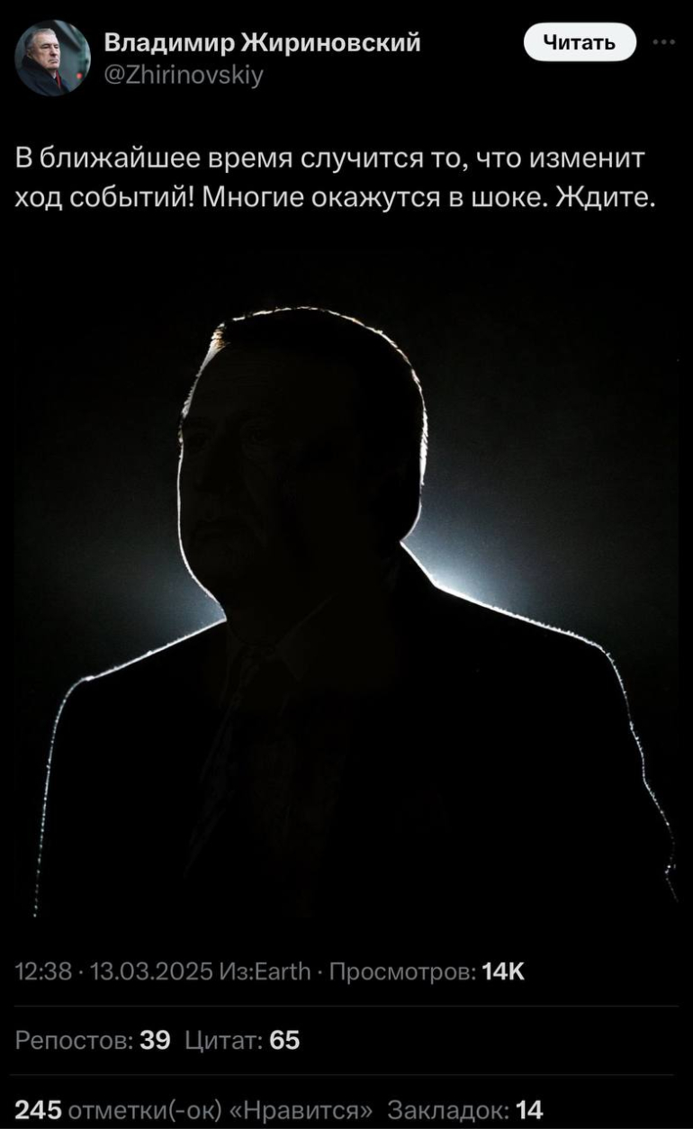 В официальном аккаунте Владимира Жириновского, который скончался в 2022 годы, впервые за долгое время появилось загадочное сообщение о нечто грядущем, которое «изменит ход событий».