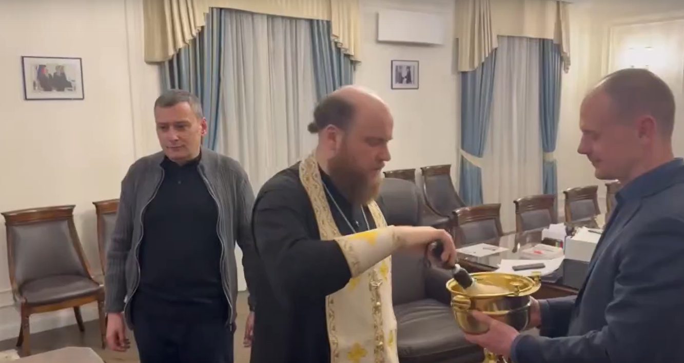 Глава Курской области Александр Хинштейн освятил свой кабинет после ареста предшественника. Об этом бывший депутат Госдумы от Самарской области рассказал в своем телеграм-канале.