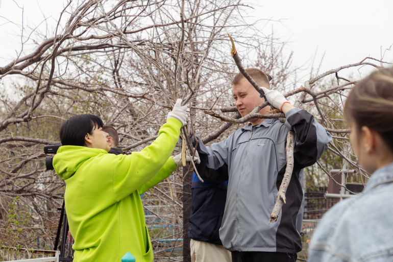 Заводчане быстро справились с упавшими деревьями и прошлогодней листвой.