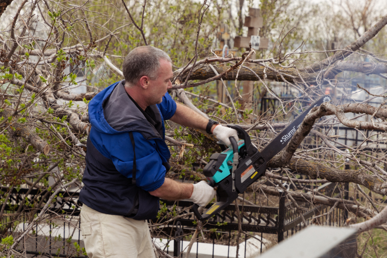 Перед Пасхой принято наводить порядок на могилах родственников. Но, к сожалению, не всем это под силу сделать – в силу своего возраста или просто невозможно справиться - как Нине Федоровне, на могилу свекра и свекрови которой упало засохшее дерево.
