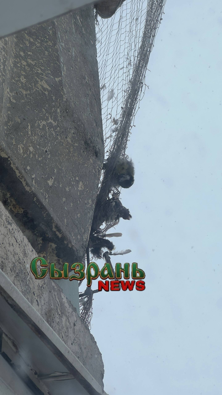 Теперь на балконе можно увидеть жуткую картину: безжизненных тушки, запутавшиеся в сетях. Некоторые птицы, судя по всему, погибали долго и мучительно - их крылья и лапки искалечены, перья взъерошены в последней попытке вырваться из плена. Вся эта жуткая картина превратила обычный жилой дом в зловещий символ человеческой беспечности.