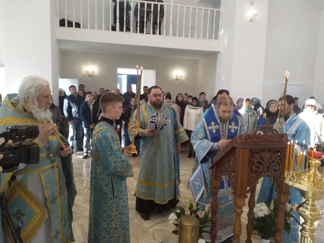 7 апреля православные христиане отмечают праздник Благовещения Пресвятой Богородицы. В этот день в новом сызранском храме в честь Всех Святых, что расположен в Казачьем парке на ул. Интернациональной, прошла первая божественная литургия. Ее провел епископ Сызранский и Шигонский Леонтий, сослужили владыке клирики Сызранской епархии, в числе которых был и настоятель нового храма, отец Сергий Цымбалюк. Богослужение сегодня также посетил и глава Сызрани Анатолий Лукиенко.