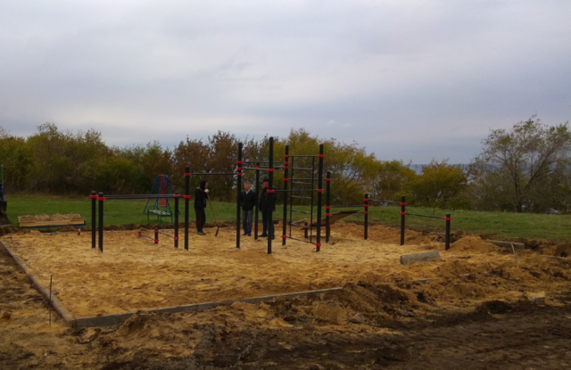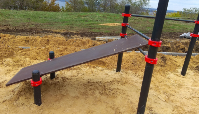 Там уже проведена планировка участка и благоустроена площадка с песчаным покрытием с бортовым камнем на бетонном основании. Установлен комплекс из турников, шведской стенки, скамьи для пресса, брусьев, турников для отжимания. Также там установят гимнастические кольца для занятий детей и подростков.