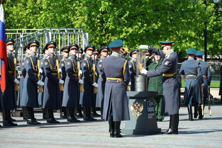 Накануне, состоялось историческое событие: частицу пламени от московской святыни перенесли на специальную лампаду, чтобы 6 мая зажечь новый Вечный огонь в Санкт-Петербурге - на мемориале «Журавли».