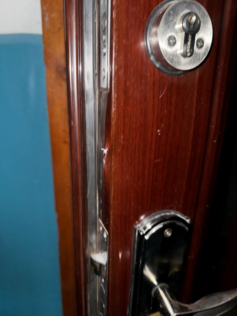 Подружки парней стали звать их вернуться к машине и они ушли, но на прощание разбили ногами окно в подъезде. Автор поста публикует фото разбитого окна и поврежденной двери в квартиру.