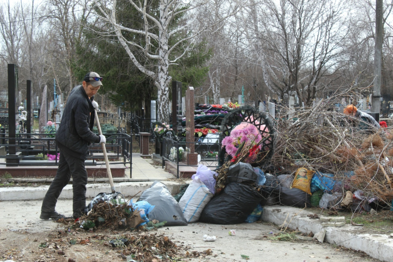 В ЖКХ призывают горожан, которые посещают кладбища, собирать мусор в пакеты и по окончании уборки могил выносить собранный мусор к проезжей части.