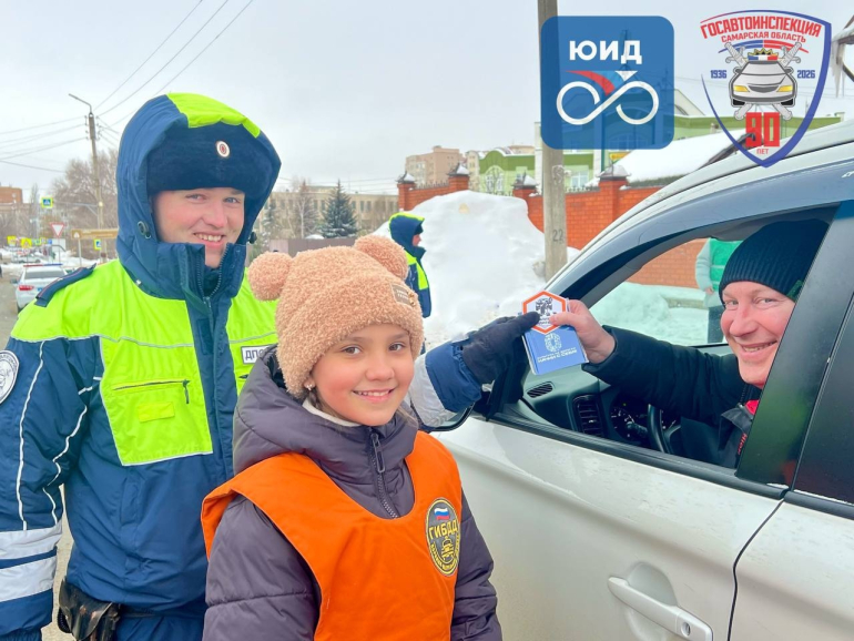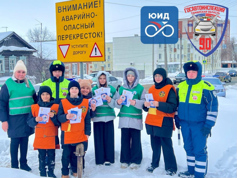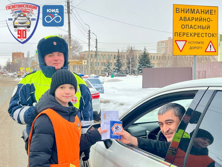 В Сызрани прошла добрая акция «Вежливый водитель». Дети вместе с инспекторами ГИБДД вышли на аварийно‑опасный перекресток, чтобы напомнить водителям о безопасности.