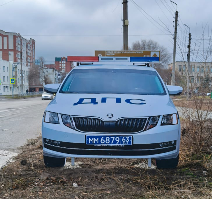 В Сызрани на местном «проклятом» перекрестке коммунальный службы поставили на дежурство муляж полицейской машины. Конструкция находится на подъезде к пересечению улиц Ульяновской и переулка Некрасовского.