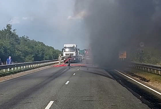 Груженный металлом большегруз загорелся на трассе Сызрань-Саратов. Как передает «Вольск.ру», ЧП произошло в шестом часу вечера 18 августа на 141 километре федеральной автодроги. Пожар был настолько сильным, что вспыхнула прилегающая территория - по словам очевидцев, огонь перекинулся на деревья поблизости.