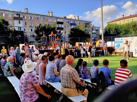 На спортивном корте и прилегающей к нему новой детской площадке по адресу улица Комарова, 8 вечером 15 августа было особенно многолюдно. Жители микрорайона Монгора пришли сюда целыи семьями не просто так. Причиной тому стал праздничный фестиваль "Содействие PRO", где можно было посмотреть выступление творческих коллективов и послушать о проделанной работе по благоустройству придворовых территорий.