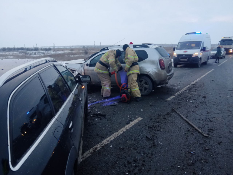 Пожарные-спасатели на месте ДТП провели аварийно-спасательные работы – стабилизировали автомобили и деблокировали людей.