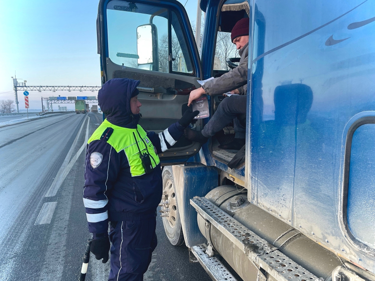 Сотрудники Госавтоинспекции беседовали с водителями легковых и грузовых автомобилей о безопасности на дороге.