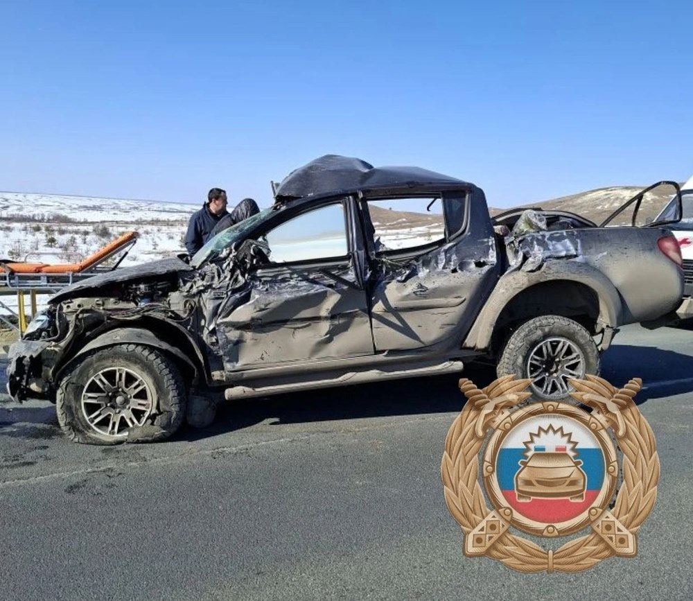 «Взгляд-Инфо» сообщает, ДТП произошло в два часа дня у поворота на село Алексеевка. В аварию попали пикап Mitsubishi L200 и два большегруза – «Камаз» и Sitrak. От удара пикап к металлическим ограждениям.