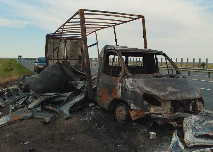 Сообщение о происшествии в экстренную службу поступило в 21:40 11 июля. На 196-м километре трассы неподалеку от села Барановка водитель «Газели» почувствовал запах дыма из моторного отсека.