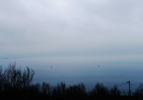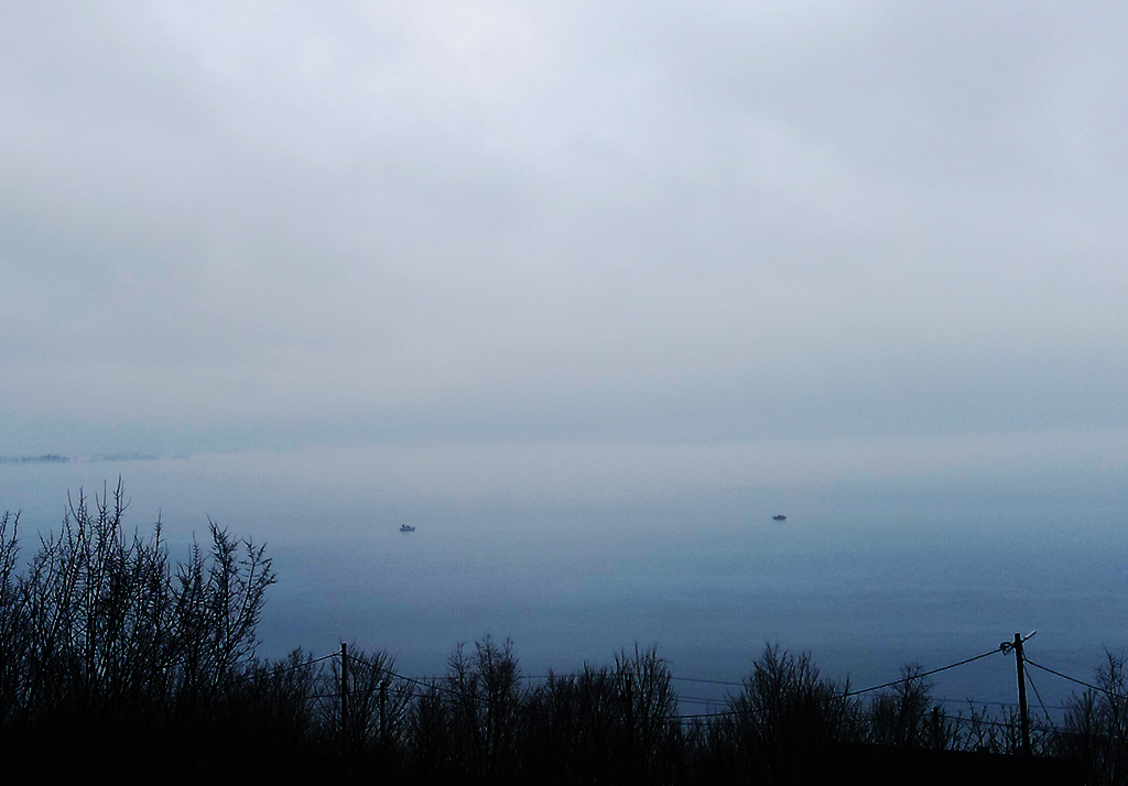 Очевидцы наблюдали на покрытой туманом акватории Саратовского водохранилища небольшую флотилию из судов с рыболовами.