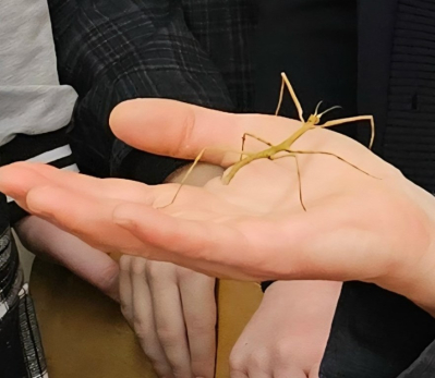 Один из учеников продемонстрировал всем своего необычного питомца из отряда насекомых - привиденьевого Палочника, а также рассказал об особенностях содержания его в домашних условиях.