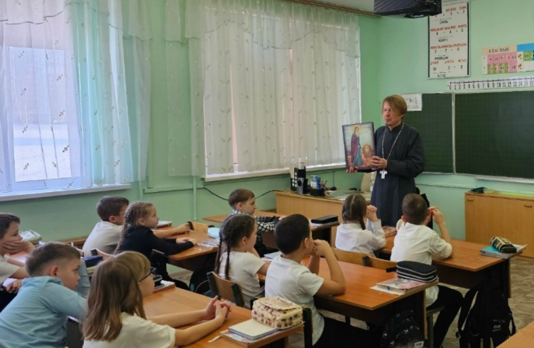 На встрече со школьниками протоиерей Александр Устинов рассказал детям об обязанности человека по отношению к домашним питомцам и ко всему животному миру.