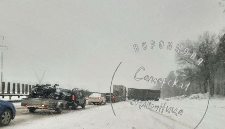 В Самарской области зафиксирована серьезная авария. На месте происшествия наблюдается автомобильная пробка.