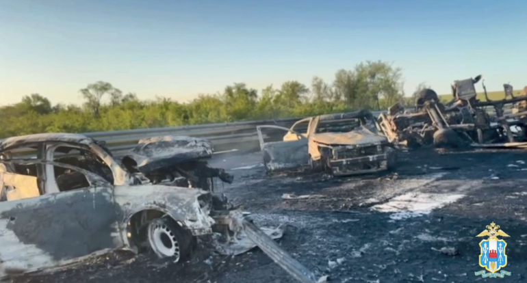 По предварительным данным, водитель грузовика с груженой битумом цистерной протаранил барьерное ограждение, вылетел на встречную полосу и врезался в микроавтобус «Пежо» и легковые автомобили «Фольксваген Пассат» и «Лада Веста».