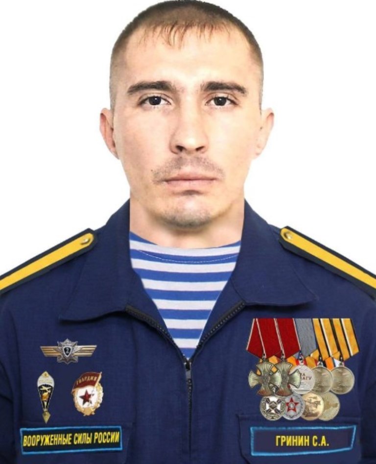 Сергей Гринин заметил пикирующий дрон с боеприпасом и накрыл его собой, чем спас раненого товарища. Тяжелораненый старшина продолжал командовать группой. Заметив противников, Сергей Анатольевич подпустил их к себе, бросил осколочную гранату и уничтожил несколько националистов.
