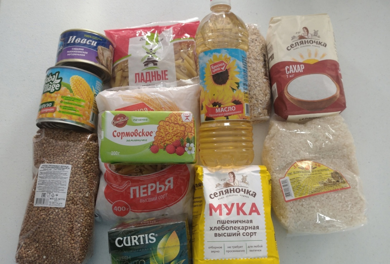 Каждый продуктовый набор отличался от другого, но в каждом наборе было продукты. 11 наименований продуктов. Автоволонтеры развели по домам нуждающихся десятки продуктовых наборов и имбирные пряники, которые сделали дети.