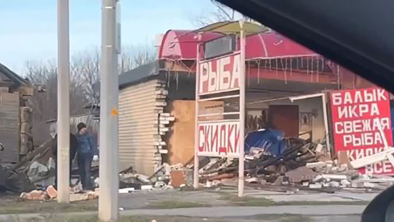 В местных пабликах появились кадры с места ДТП, в котором дальнобойщик на многотонной фуре вломился в рыбный магазин, расположенный на трассе М-5 под Сызранью.