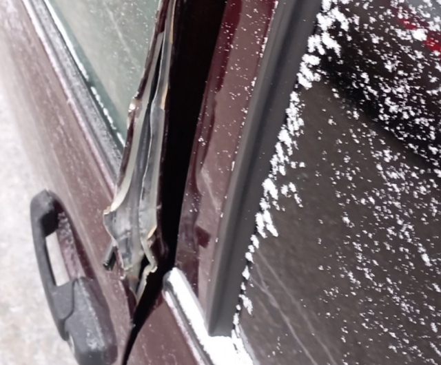 Неизвестные пытались забраться в машину не совсем обычным способом. Кто-то хотел отогнуть водительскую дверь неким инструментом. К счастью, по какой-то причине свое дело до конца они не довели, но машину повредили. Это явно видно на фото, которое автовладелец выложил в сеть. Теперь автомобилю требуется ремонт.