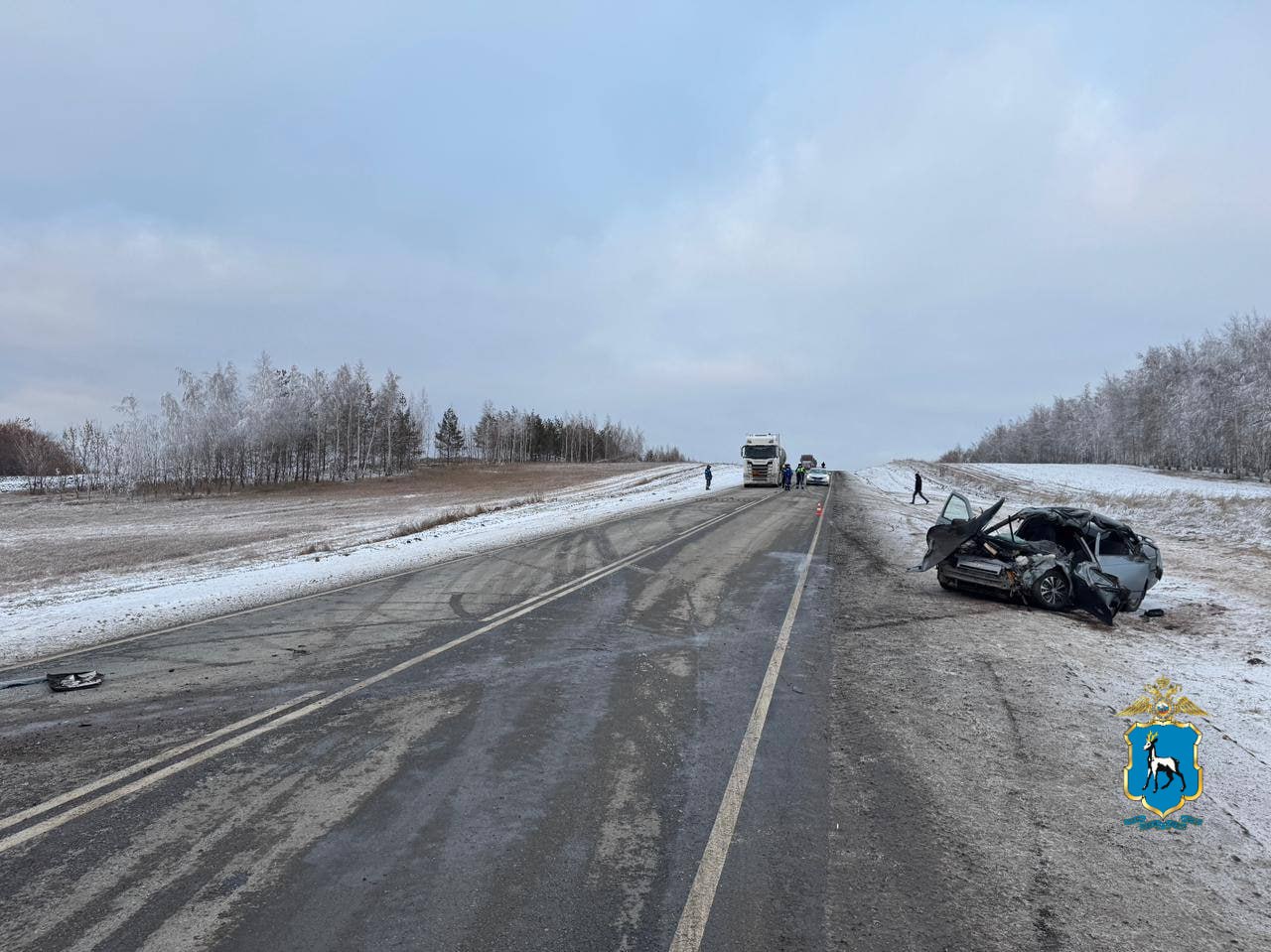 В самарском МВД сообщили, что авария произошла в 13.20 на восьмом километре дороги. 22-летний водитель легкового автомобиля вылетел на встречную полосу и попал под удар встречного грузовика.