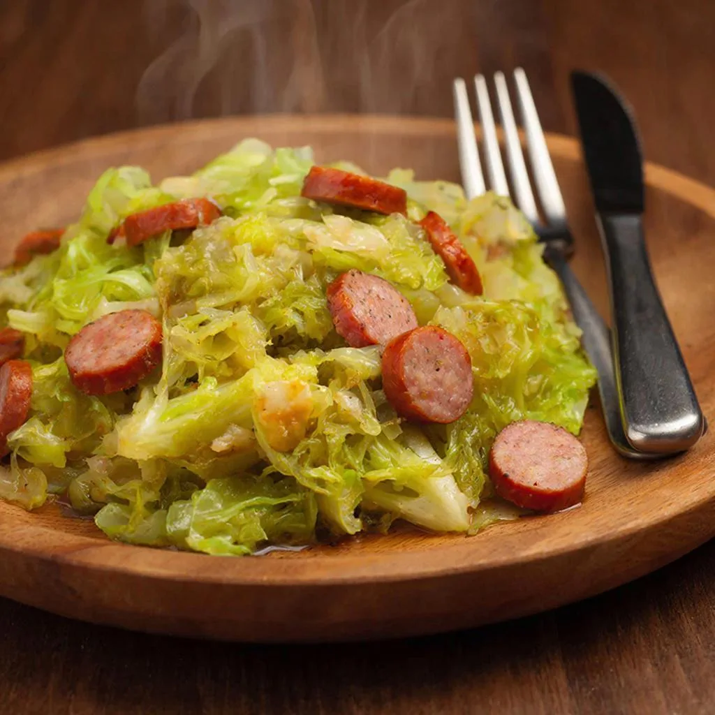 Этот простой рецепт подарит вам вкусное и ароматное блюдо. В нем идеально сочетаются два вида капусты и копченые колбаски. Щепотка тмина придает ему пикантность.