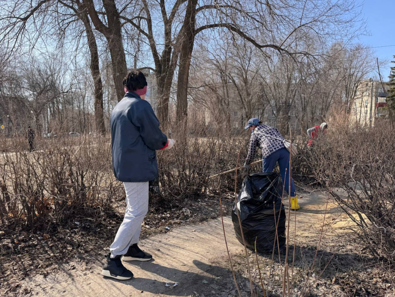 В сквере рядом с торговым центром «Образцовый» прошёл субботник. Местные жители собрались, чтобы очистить территорию от мусора и опавшей листвы.