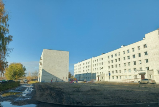 В 2024 году в этой новостройке дали квартиры детям-сиротам и переселенцам из аварийных домов. По словам жителей, благоустроили там лишь дорогу вдоль подъездов.