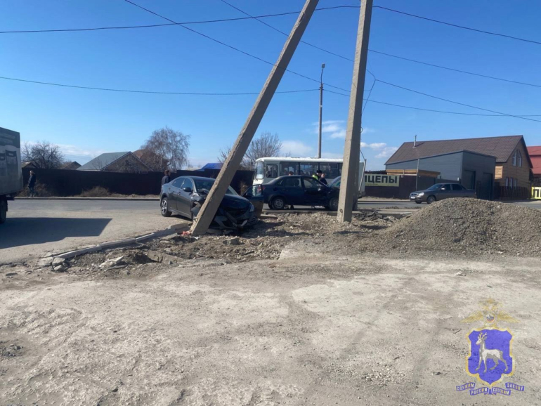 По данным полиции, в полдень 86-летний мужчина за рулем автомобиля Lada Granta в переулке Молодогвардейский собирался проехать нерегулируемый перекресток. Во время маневра он не пропустил 30-летнюю автоледи на автомобиле Mazda 6. От удара обе машины изменили траекторию движения и врезались в столбы.