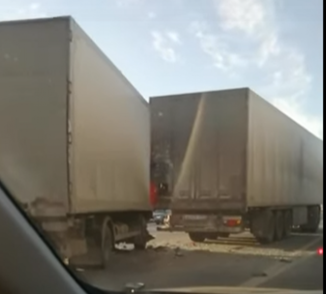 По свидетельству очевидцев дальнобойщик за рулем большегруза MAN врезался в попутную фуру. Последствия аварии попали на видео, где видно, что кабина большегруза MAN сильно разбита. Фура с номерами Пензенской области пострадала существенно меньше.