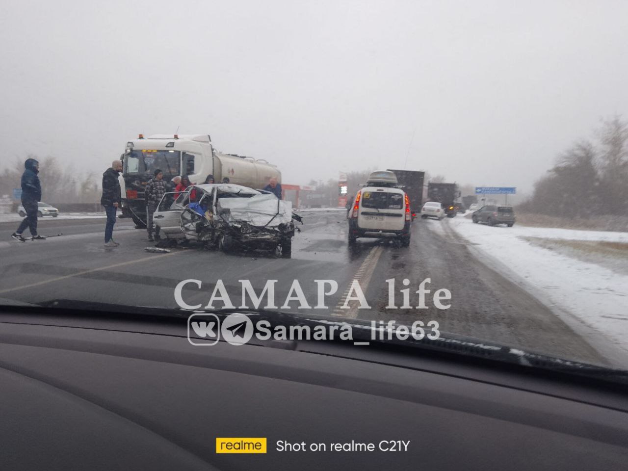 В эти минуты экстренные службы и полиция работают на месте страшного ДТП в Волжском районе Самарской области. Сообщается, что около села Журавли на трассе Самара-Волгоград столкнулись бензовоз и легковой автомобиль.