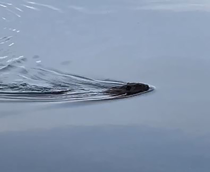 На видео бобр степенно перемещается по водной глади по своим делам, а в какой-то момент ныряет, громко хлопнув хвостом.