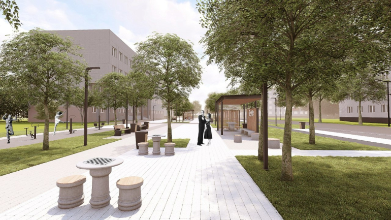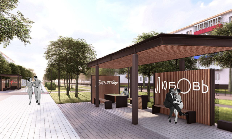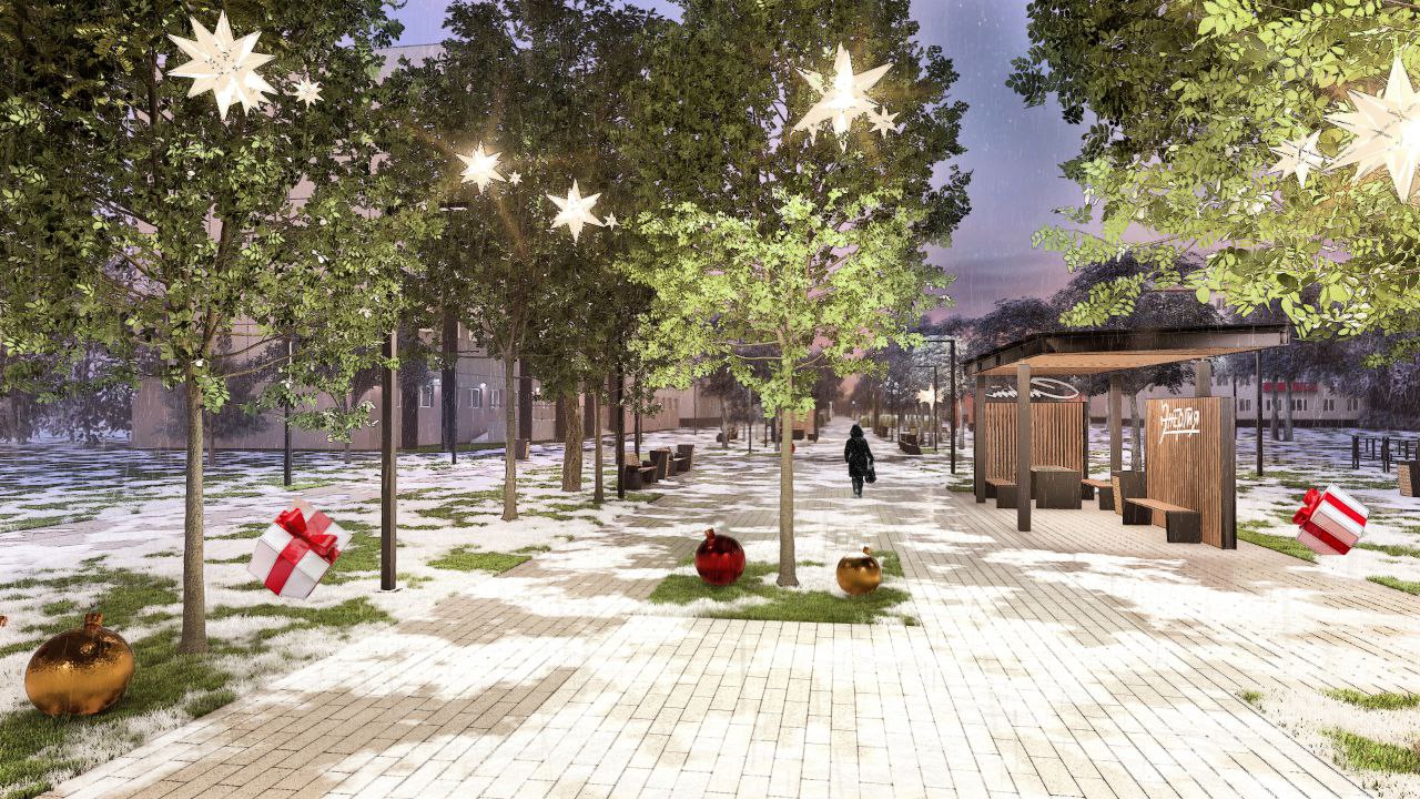 На аллее появятся тематические перголы, игровая зона, мини-фонтан, гостевая парковка, велодорожка, лавочки с зарядными станциями и различные малые архитектурные формы. Все это будет дополнено озеленением, видеонаблюдением и разнообразным освещением.