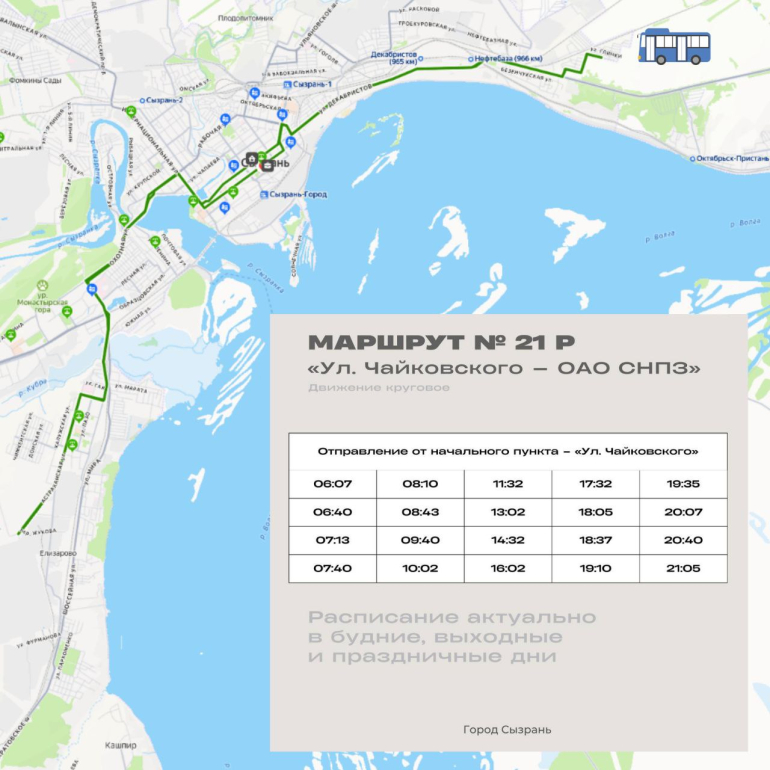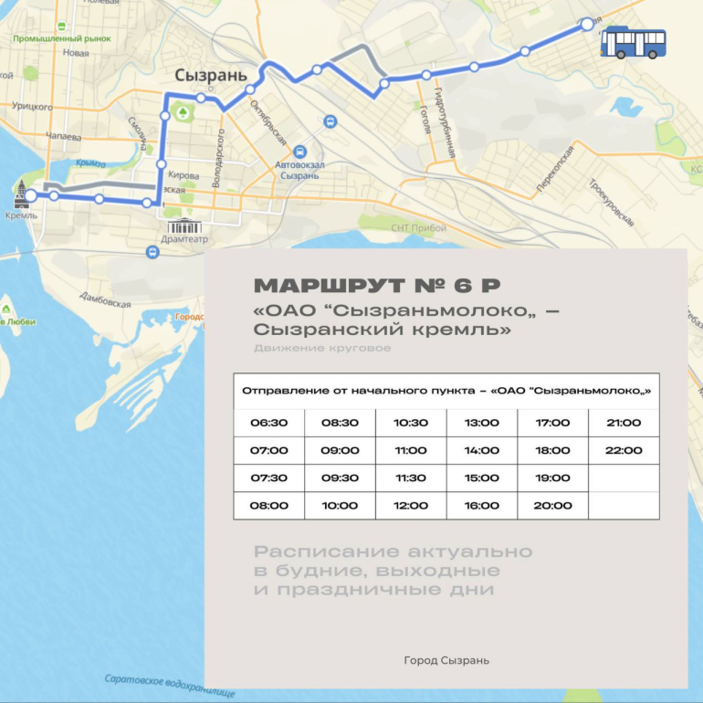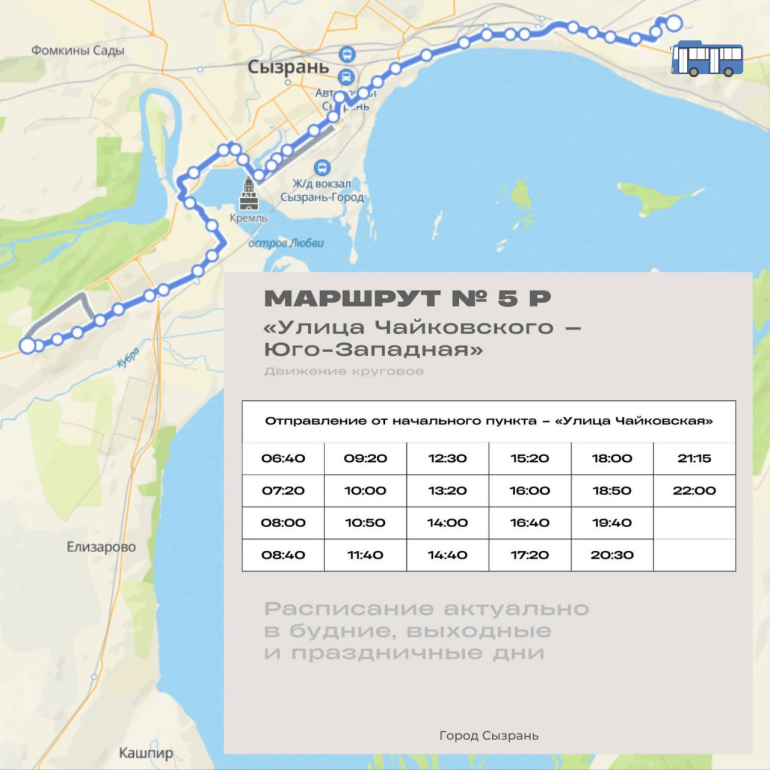 Также в городе восстановили два популярных маршрута. Весной 2025 года движение автобусов № 6Р «Сызраньмолоко – Сызранский кремль» приостановили из‑за нехватки водителей. Жители Заусиновского района активно добивались возобновления сообщения, и теперь транспорт стабильно выходит на линию. Кроме того, вновь работает маршрут № 5Р «Улица Чайковского – Юго‑Западная».