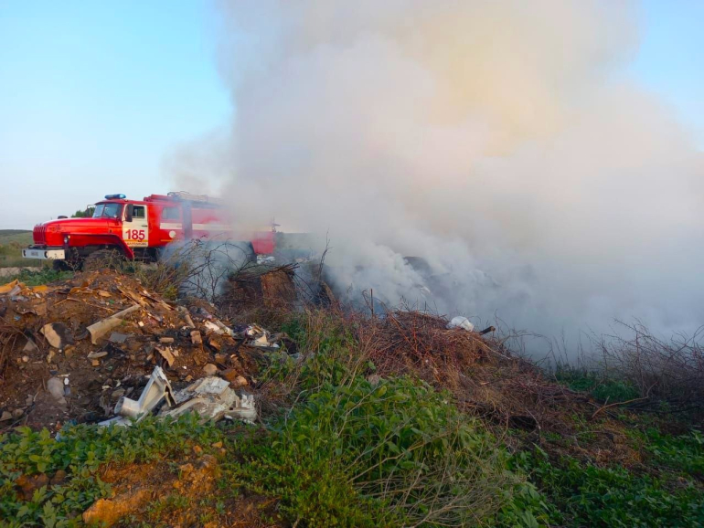 На видео видно, что горел сваленный в кучи сухостой, бытовой мусор и прочие отходы. От забытой всеми свалки шел густой едкий желто-серый дым.