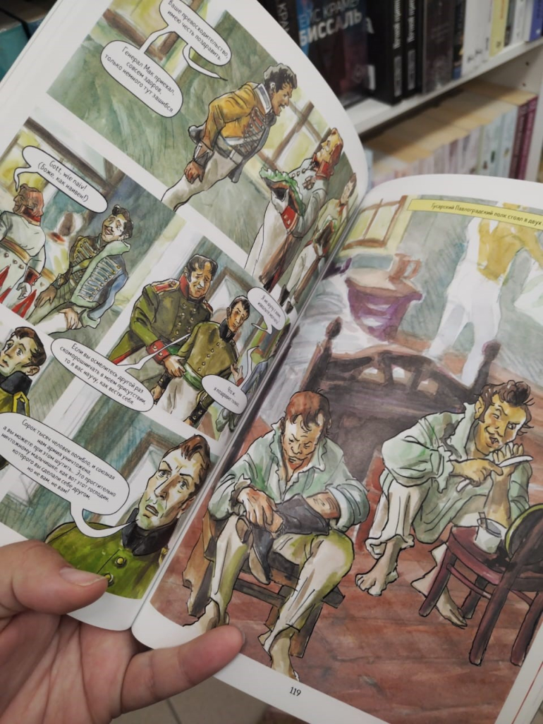 Приставка «Графический роман» к каждому названию и слова «по мотивам» уже позволили выпустить «Войну и мир», «Евгения Онегина», «Героя нашего времени», а также «Преступление и наказание».
