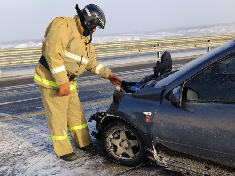 Пожарные-спасатели из Октябрьска приехали на помощь участникам ДТП.