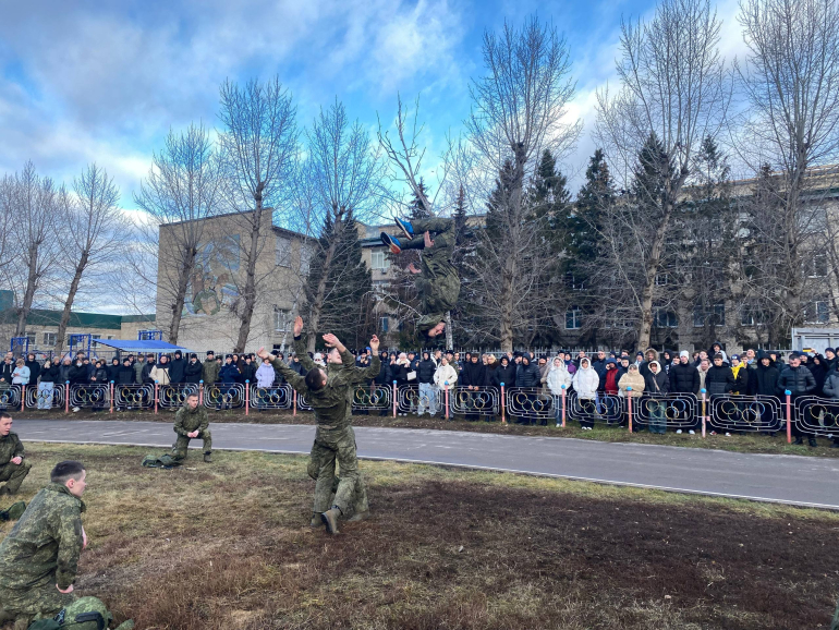 Программа дня получилась насыщенной. Сначала участники пообщались с начальником филиала училища, затем посмотрели выступления курсантов.